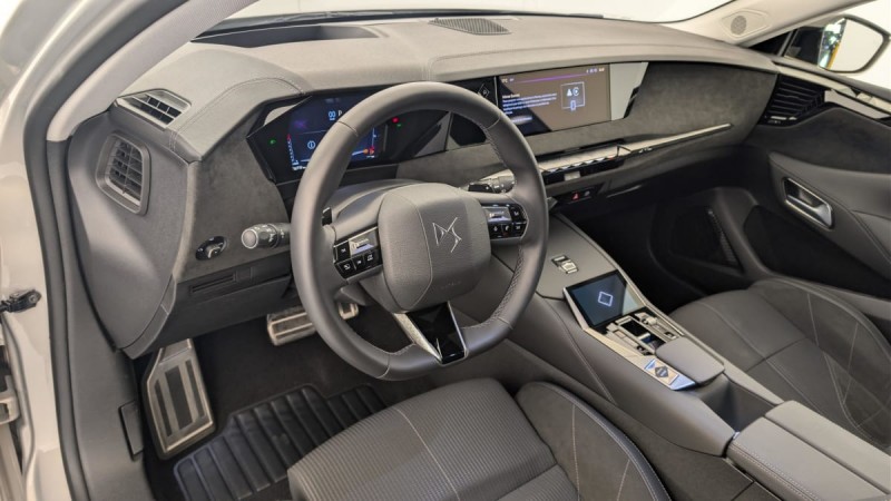 - Intérieur Alcantara Noir : Planche de bord en Alcantara Ciel de pavillon clair Sellerie en Tissu Tressé Basalte avec Alcantara et toile DS Décors de panneaux de porte Chrome guilloché Volant cuir Fleur Mistral Console en toile DS Noir Basalte Panneaux de porte en Alcantara et Toile DS Noir Basalte