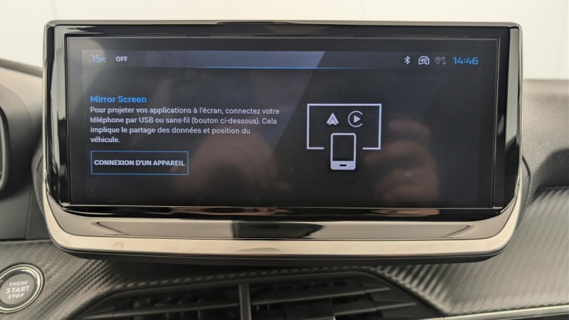 - Peugeot i-Connect: Radio DAB avec écran tactile couleur personnalisable 10" HD, Bluetooth - Mirror Screen sans fil (Apple CarPlay/Android Auto) - Wifi - 1 prise USB type C ( Data+charge), 1 prise USB type C (Charge) sur console AV