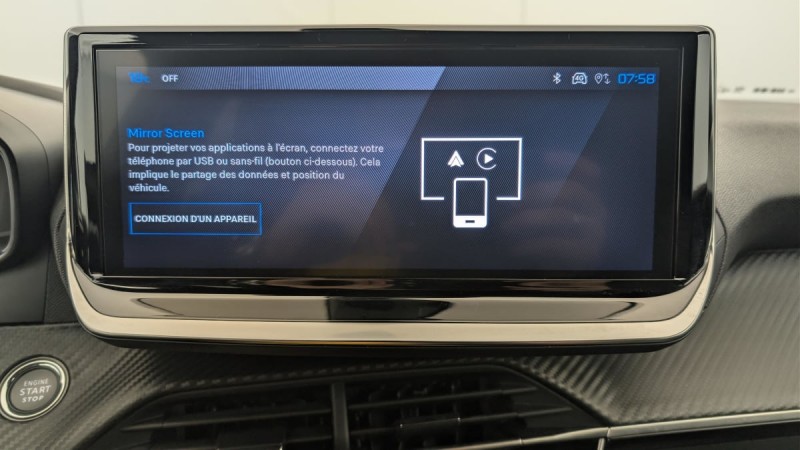 - Peugeot i-Connect: Radio DAB avec écran tactile couleur personnalisable 10" HD, Bluetooth, Mirror Screen sans fil (Apple CarPlay/Android Auto), Wifi, 1 prise USB type C ( Data+charge) et 1 prise USB type C (Charge) sur console AV
