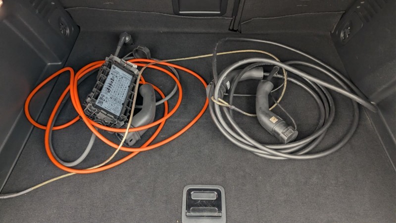 - Plancher de coffre fixe avec articulation pour accès au coffre de rangement du câble de recharge