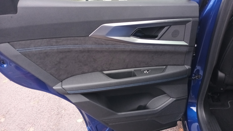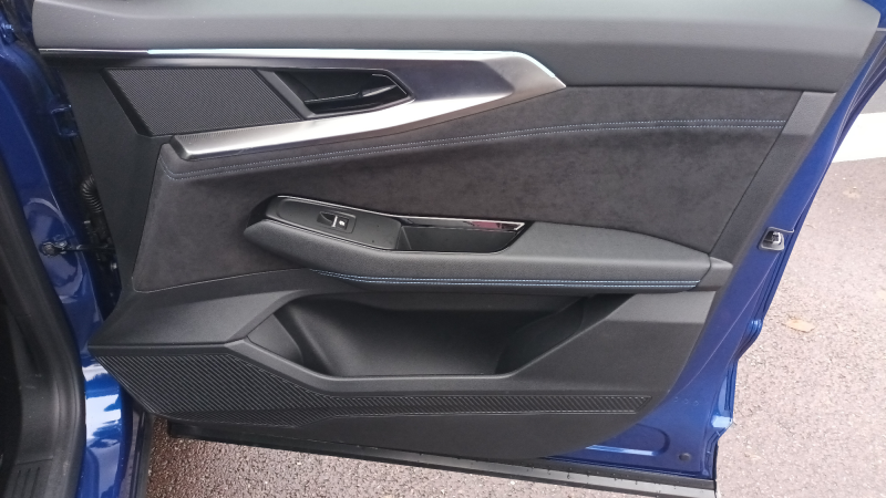 - Sellerie mixte tissu carbone / alcantara avec surpiqûres bleues: